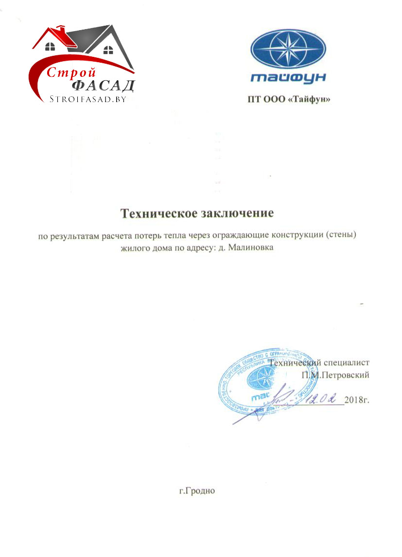 Каждому нашему клиенту, перед началом  утеплением строения, при содействии известной компании «Тайфун», мы бесплатно произведем квалифицированный теплотехнический расчет, подберем тип и толщину утеплителя, устраним «мостики холода», избавим от образования конденсата и плесени, а также определим количество тепла затрачиваемого на отопление до и после утепления (его экономию).